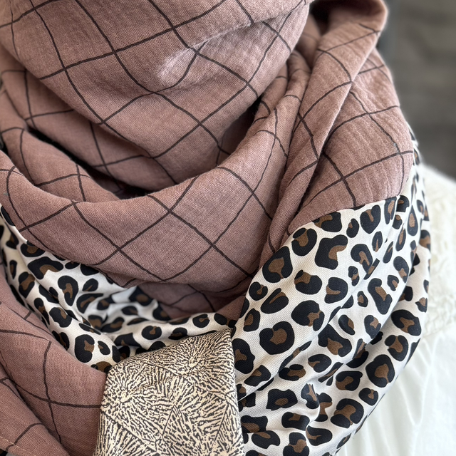 Sa matière ? La gaze de coton, reconnue pour ses qualités thermorégulatrices : elle garde la chaleur en hiver tout en restant très respirante. Résultat, c’est une écharpe que tu peux aussi bien porter dehors que garder à l’intérieur, sans jamais avoir trop chaud.