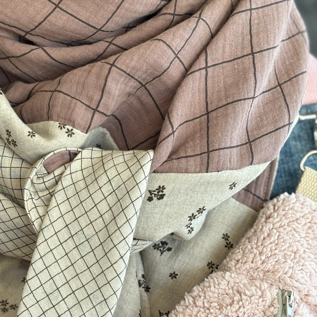Sa matière ? La gaze de coton, reconnue pour ses qualités thermorégulatrices : elle garde la chaleur en hiver tout en restant très respirante. Résultat, c’est une écharpe que tu peux aussi bien porter dehors que garder à l’intérieur, sans jamais avoir trop chaud.