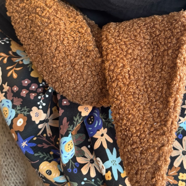 - une bande en maille bouclette caramel, pour un effet moelleux et réconfortant.
