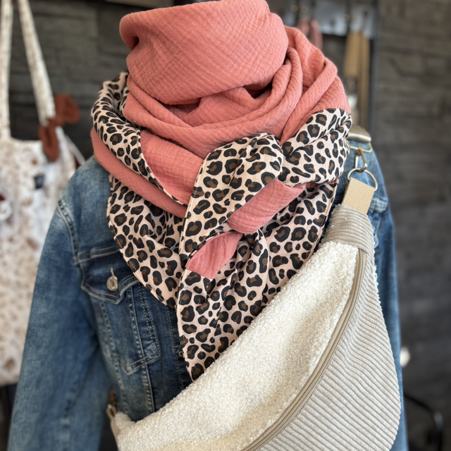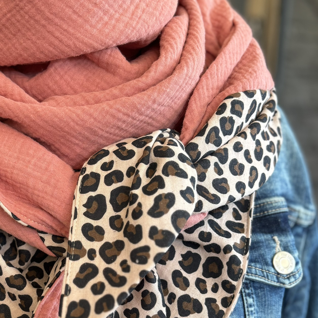 Sa matière ? La gaze de coton, reconnue pour ses qualités thermorégulatrices : elle garde la chaleur en hiver tout en restant très respirante. Résultat, c’est une écharpe que tu peux aussi bien porter dehors que garder à l’intérieur, sans jamais avoir trop chaud.
